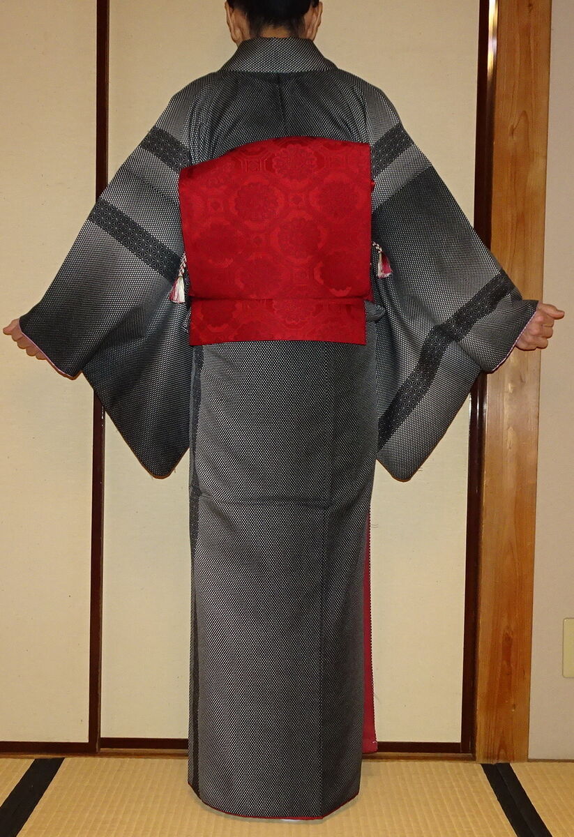 3月には桜を装いたくなるので、出番が無くなってしまう椿の小紋を選びました。
