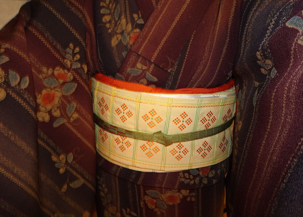 この帯の花ですが、梅かなぁ?桜かなぁ?と、私は迷ったのですが、何方に聞いても <梅>というお返事でしたので、2月中に締めたかったです。