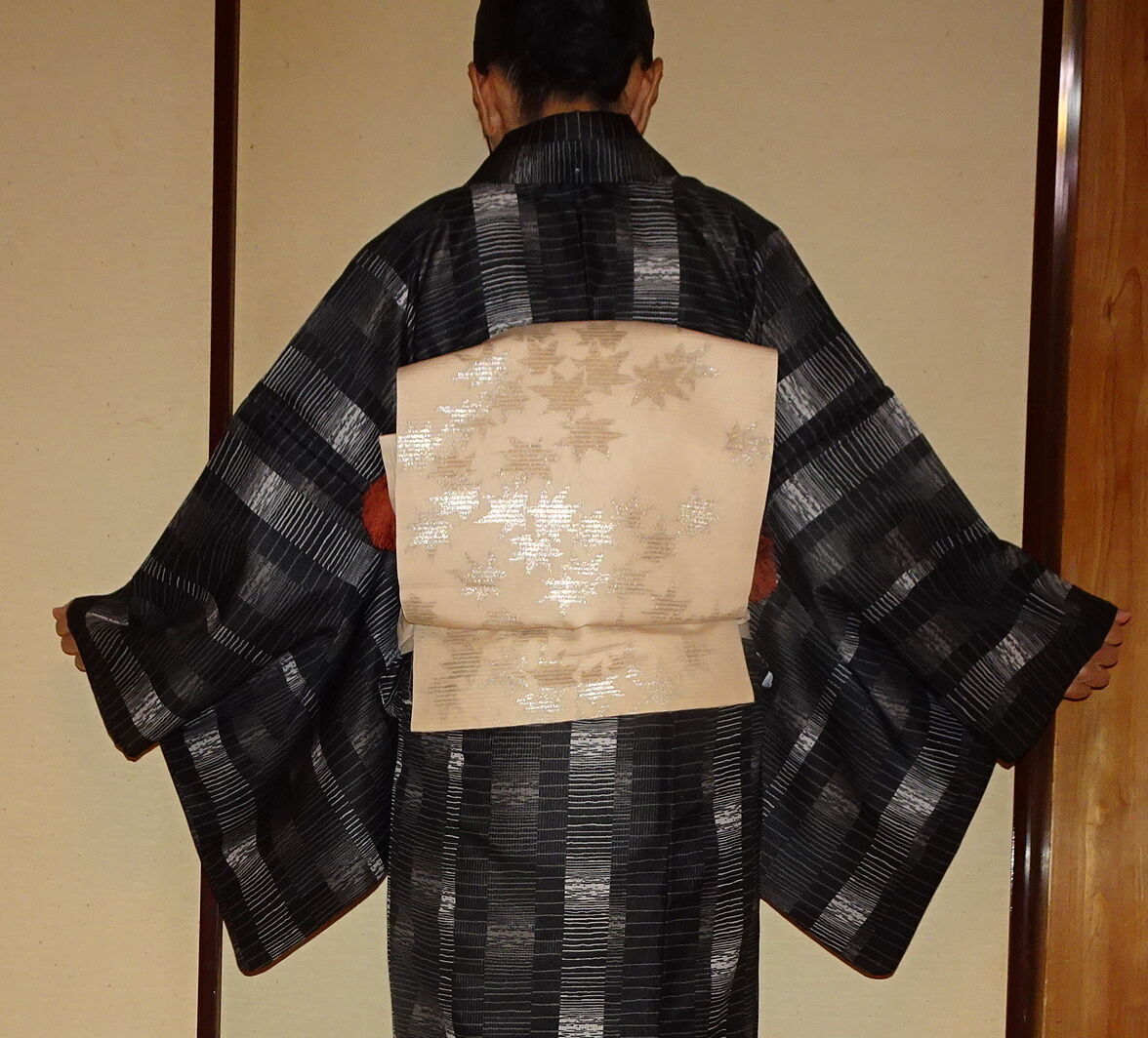 その1 ~ 黒地に白、茶の縦絽