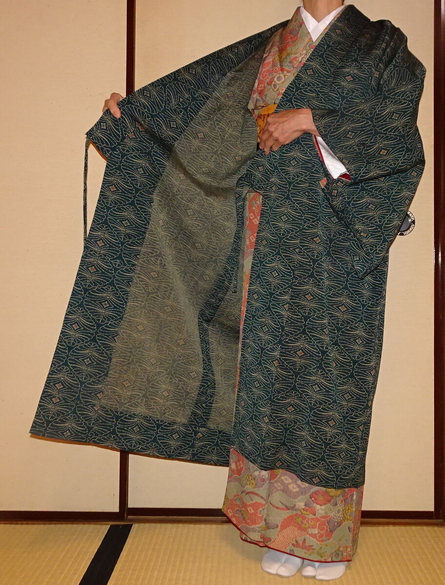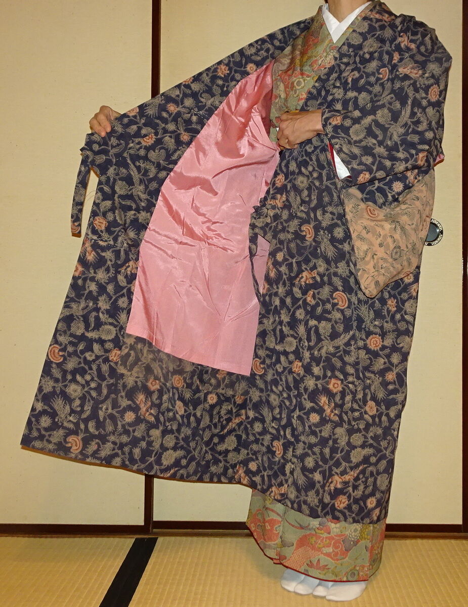 着物は本来は、帯付きで出歩くものではなく、訪問先へ埃を持ち込まないためにも、道中着を着るものなのです。
